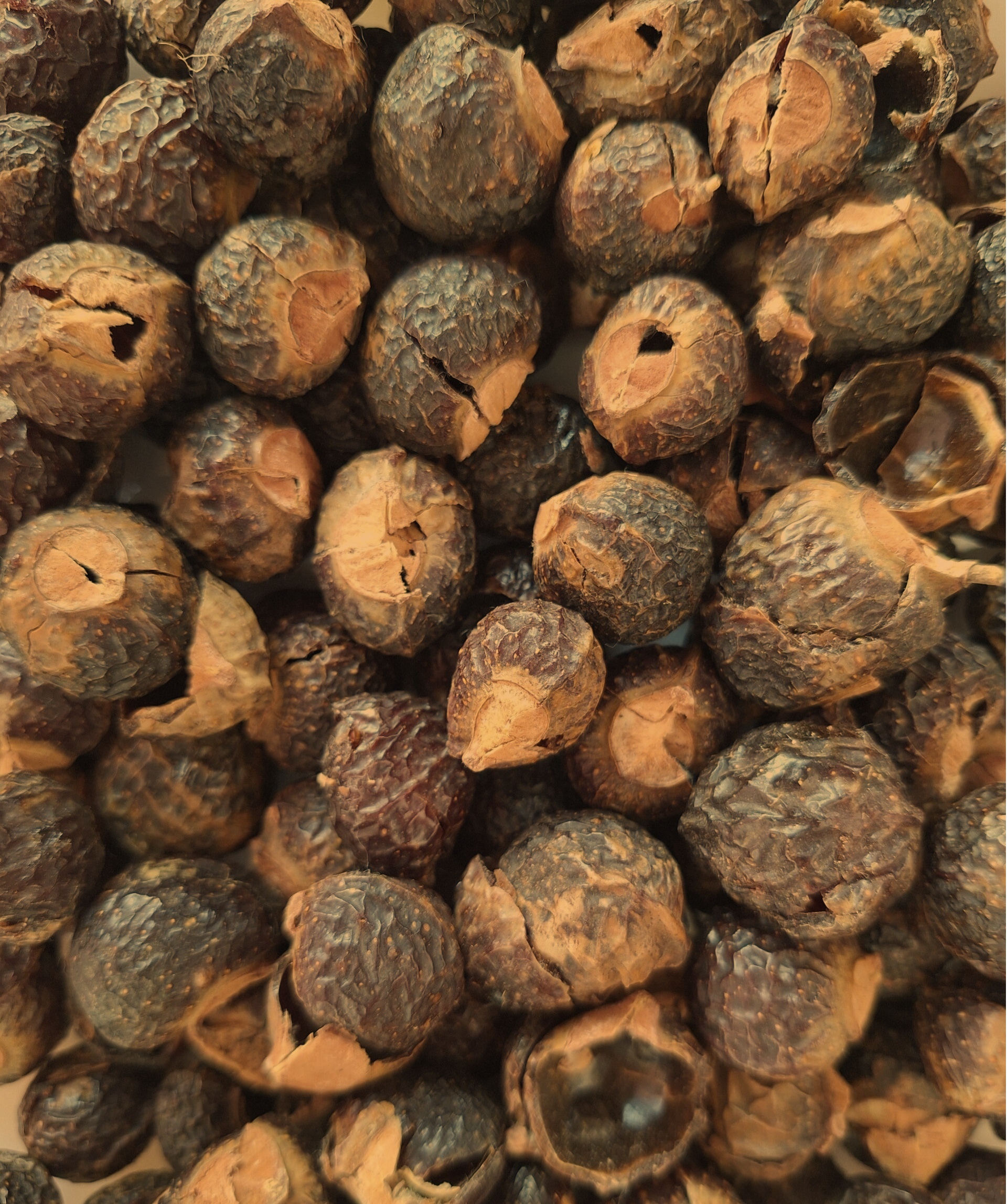 One of our core ingredients is the Soapberry fruit or Soap tree nuts - Soapnuts (Sapindus mukorossi) from the Himalayas, rich in natural saponins. Used for centuries as a detergent, soapnuts are: